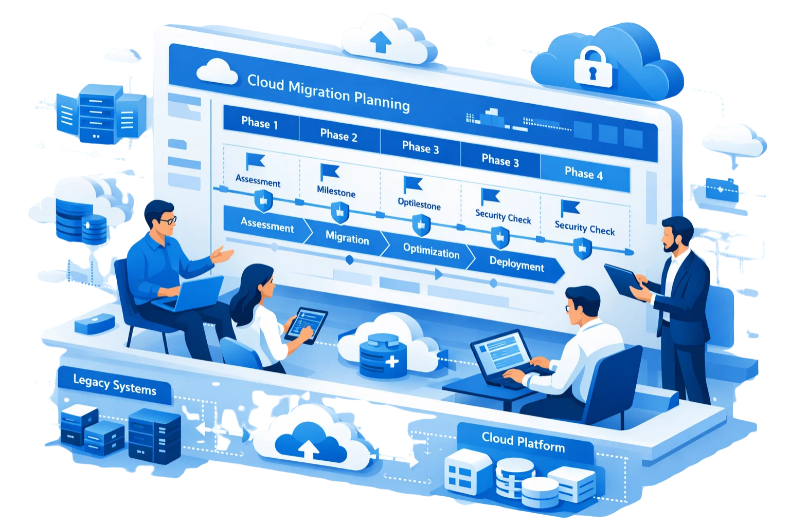 A detailed migration roadmap is created with defined timelines, phases, dependencies, and security checkpoints to ensure a smooth and controlled transition with minimal disruption.