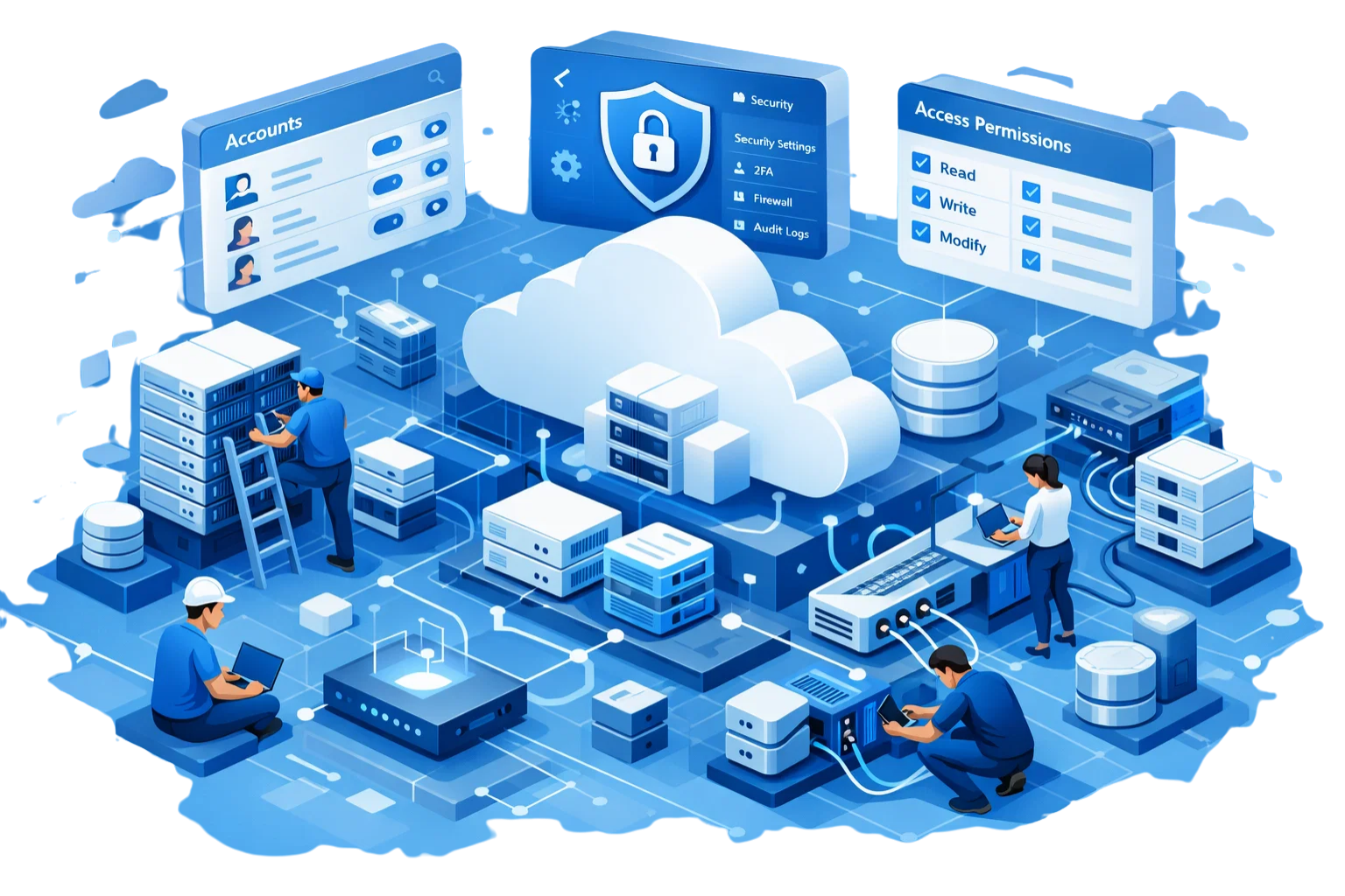 We design a clean structure for cloud permissions, storage and daily workflows.