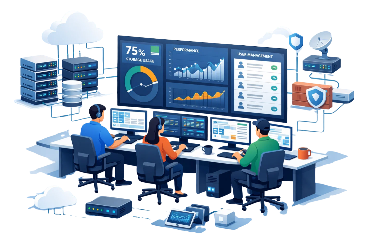 We monitor performance, manage storage, refine permissions, and continuously optimise your cloud environment as your business grows.