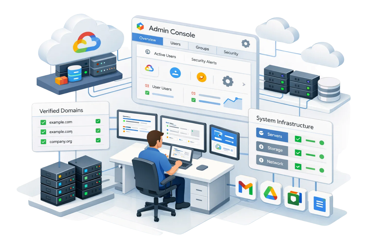 Your Google Workspace tenant is created with verified domains and admin-level controls.