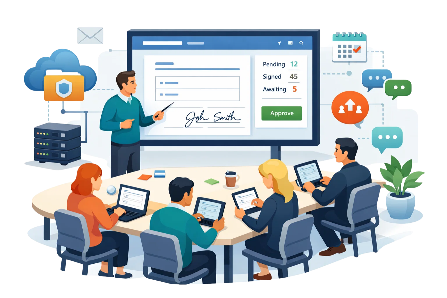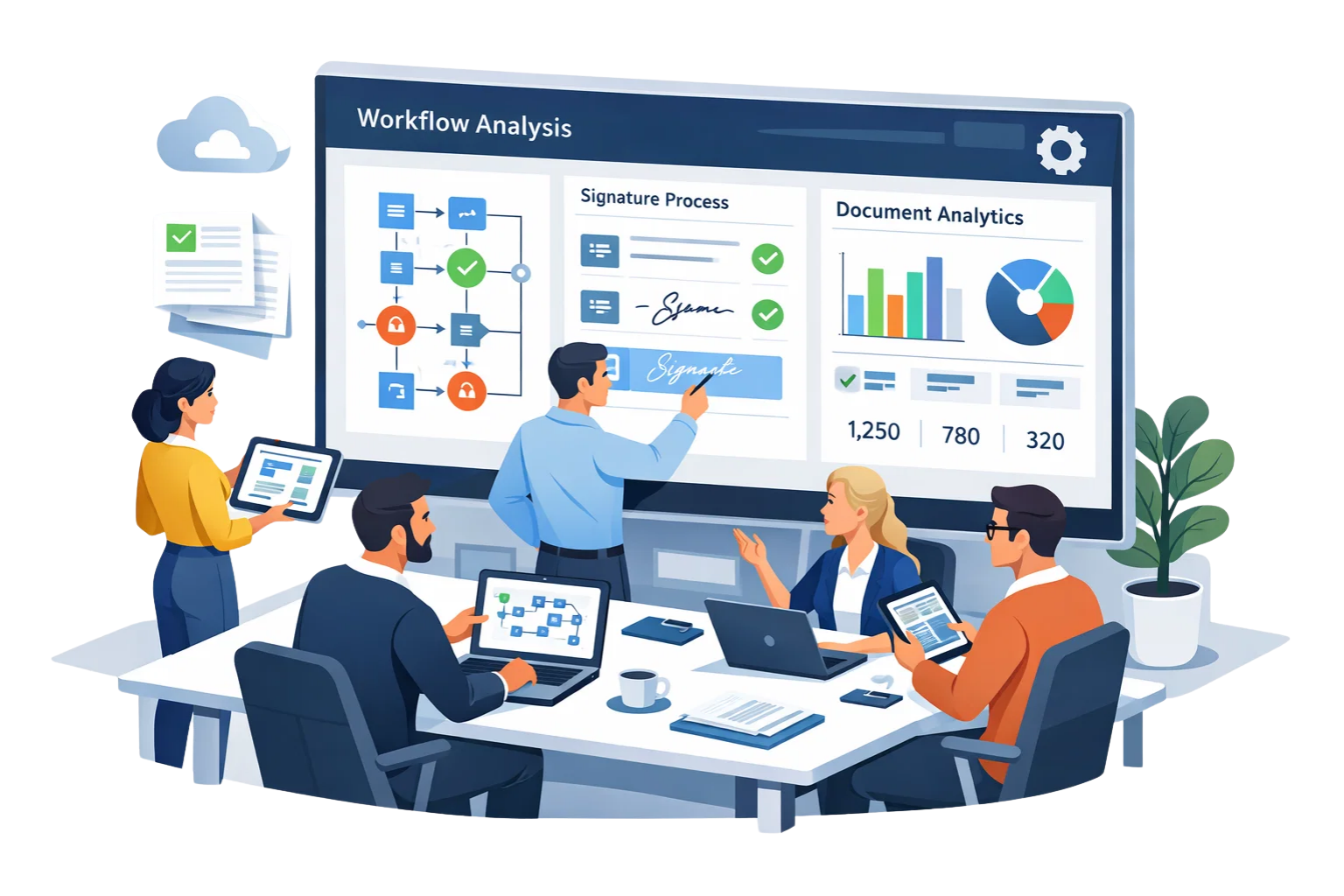 We review your document volume, existing templates, approval flows, and signing requirements to understand how documents are currently created, shared, and processed across your business.