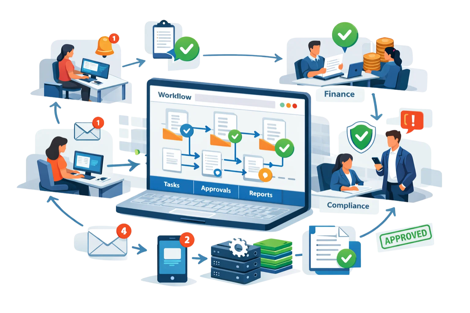 We automate approval steps, routing and notifications for documents.