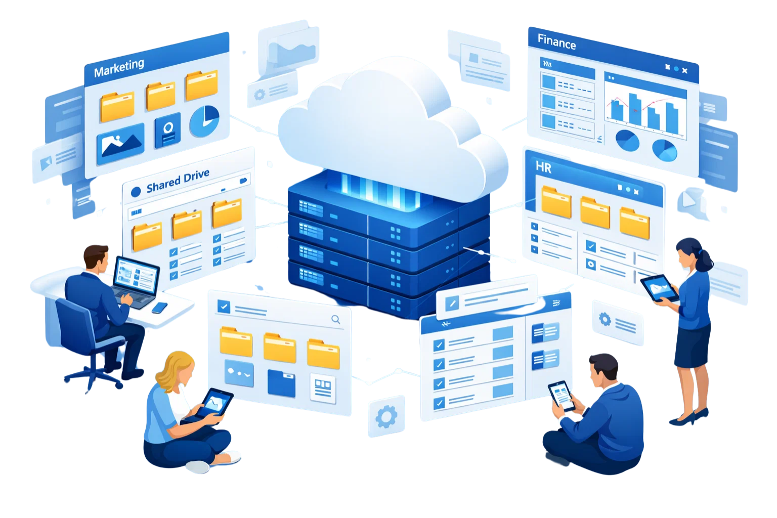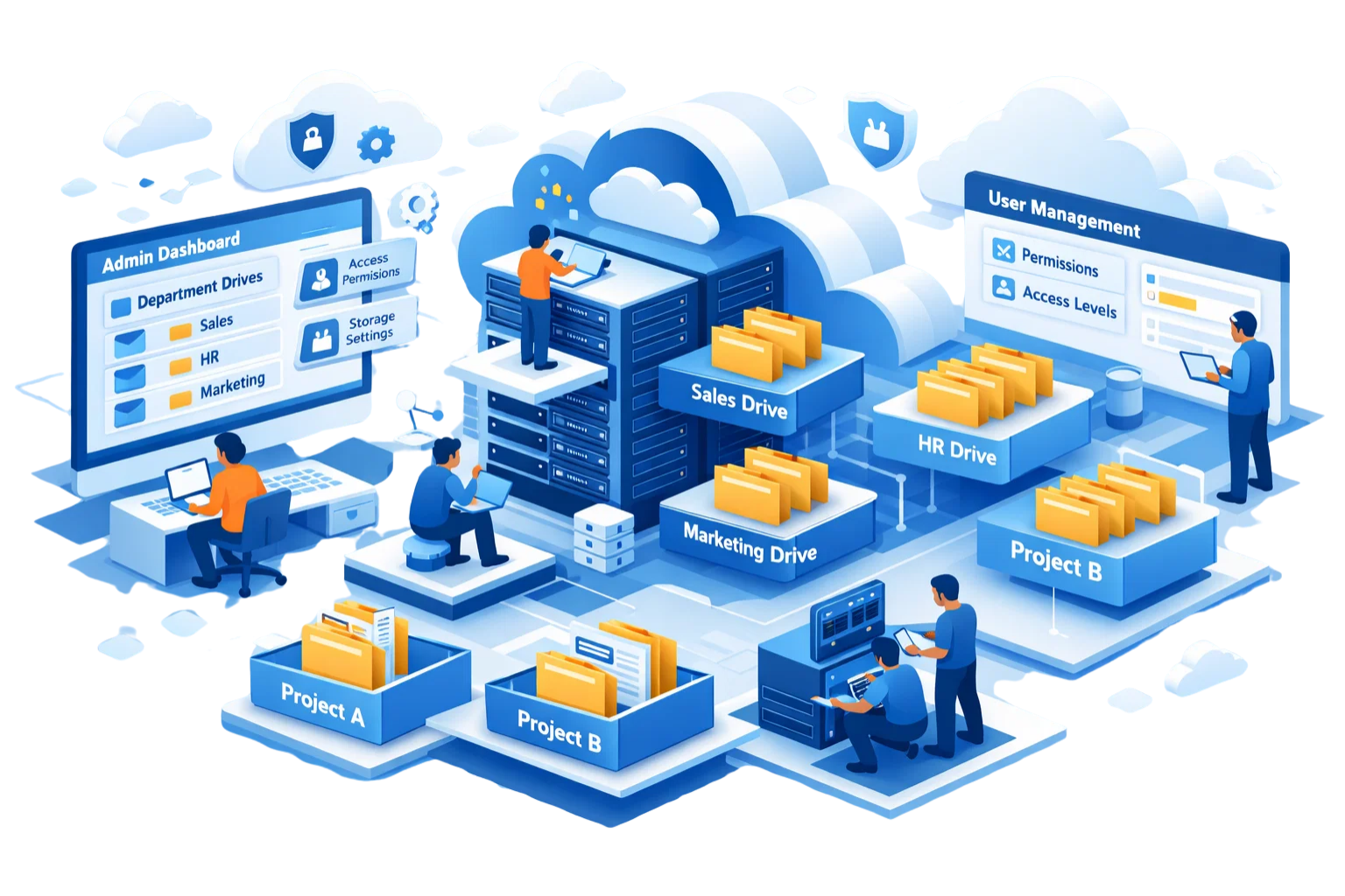 Shared drives are created for departments, management and project teams.Shared drives are created for departments, management, and project teams, ensuring a centralised system where files are easily accessible and properly organised.