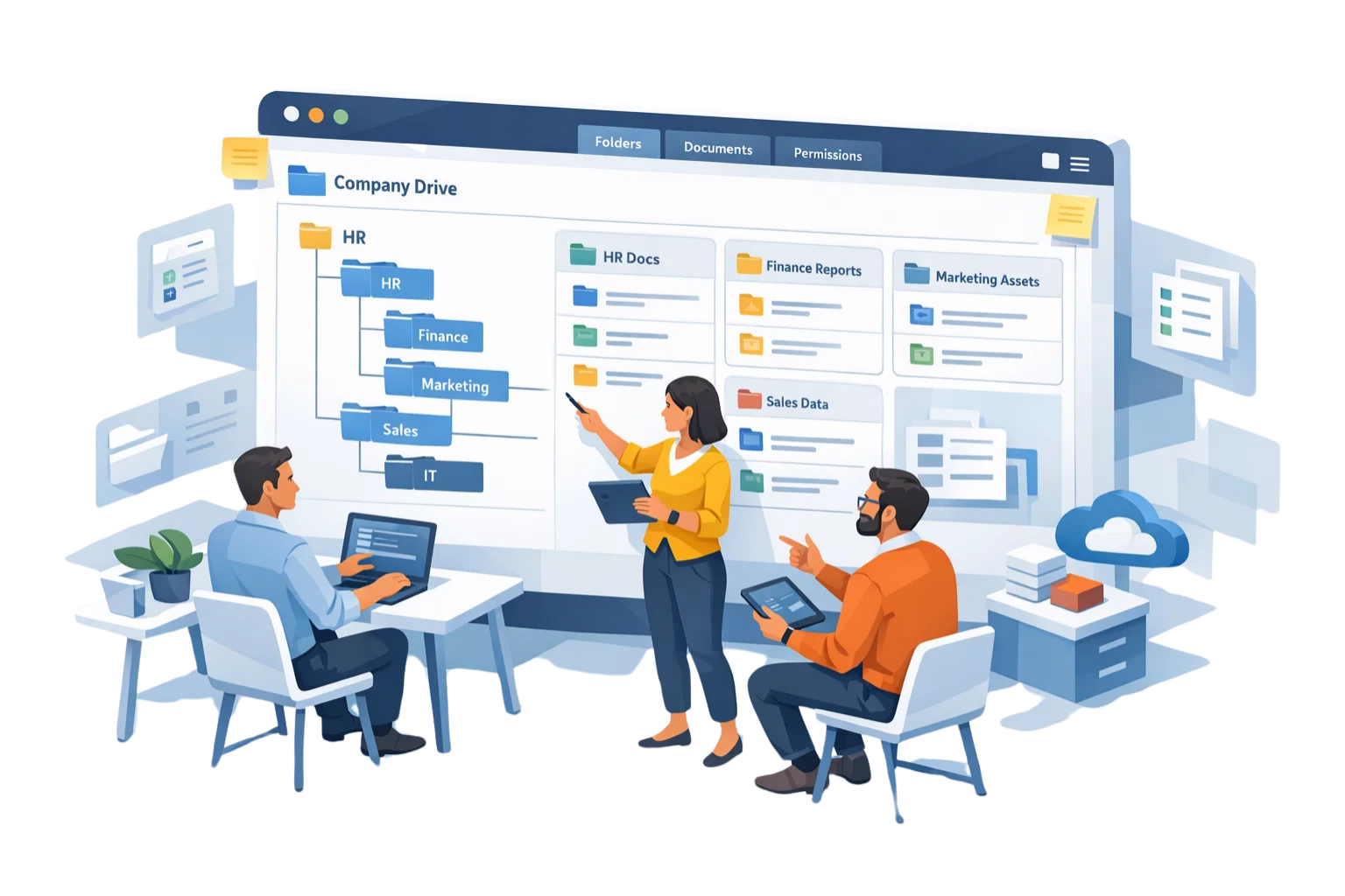A structured, department-based folder hierarchy is designed to ensure clarity, easy navigation, and logical organisation across teams, projects, and business functions.